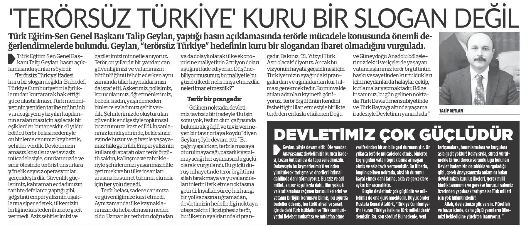 ‘Terörsüz Türkiye’ Kuru Bir Slogan Değil – Türkgün