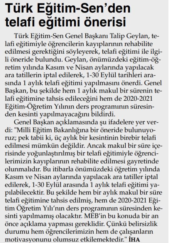 TES`den Telefi Eğitim Önerisi – Türkgün