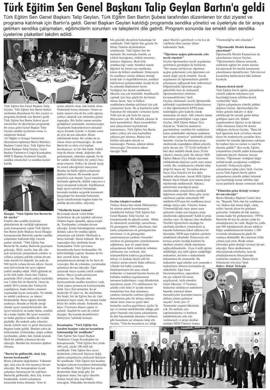 Türk Eğitim-Sen Genel Başkanı Talip Geylan Bartın`a Geldi – Bartın Manşet