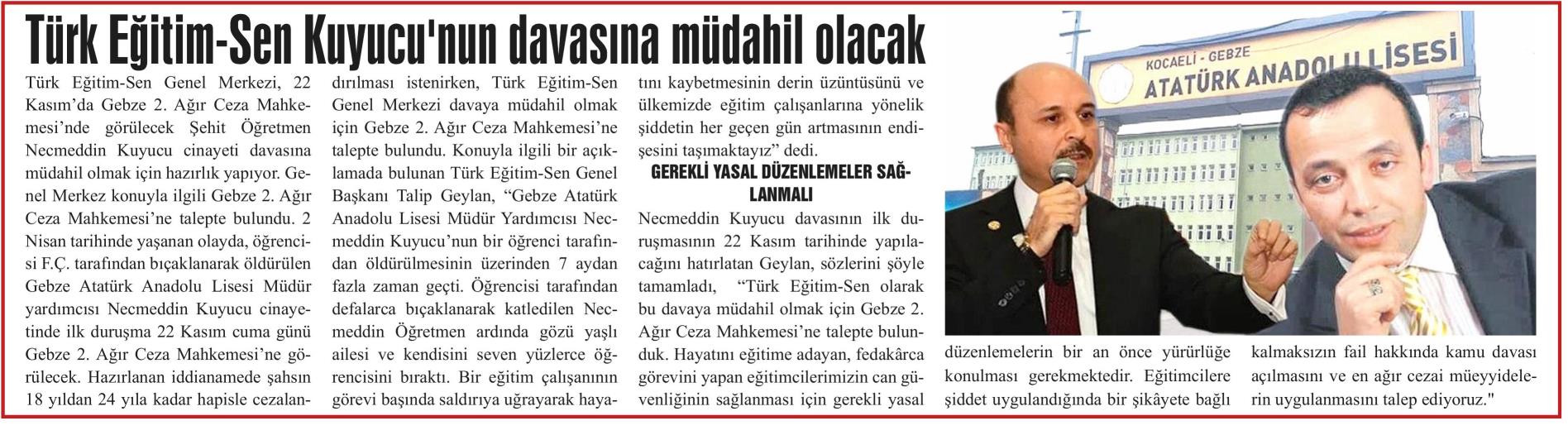 Türk Eğitim-Sen Kuyucunun Davasına Müdahil Olacak – Hedef Basında TES 18 Kasım 2019 FacebookTwitterWhatsAppLinkedin A- A A+ Son Haberler Haberler GENEL BAŞKAN TALİP GEYLAN GÜVEN TAZELEDİ 15 Şubat 2026 tarihinde Ankara’da yapılan Türk Eğitim-Sen 8. Olağan Merkez Genel Kurulu'nda mevcut... 15 Şubat 2026 Haberler 8. OLAĞAN MERKEZ GENEL KURULUMUZ COŞKU İLE GERÇEKLEŞTİ Türk Eğitim Sen 8. Olağan Merkez Genel Kurulu, 15 Şubat 2026 tarihinde Ankara’da coşku... 15 Şubat 2026 Haberler YÖNETİCİ GÖREVLENDİRME YÖNETMELİĞİNE DAVA AÇTIK Türk Eğitim Sen, 30.01.2026 tarih ve 33153 sayılı resmi gazete yayımlanan Milli Eğitim Bakanlığı... 12 Şubat 2026 Haberler IRAK TÜRKMEN EĞİTİMCİLERİNDEN GENEL BAŞKAN TALİP GEYLAN’A ANLAMLI ZİYARET Irak Türkmen Eğitimciler Öğretmen Örgütü Başkanı Ali Gülboy ve beraberindeki heyet, 11 Şubat 2026... 11 Şubat 2026