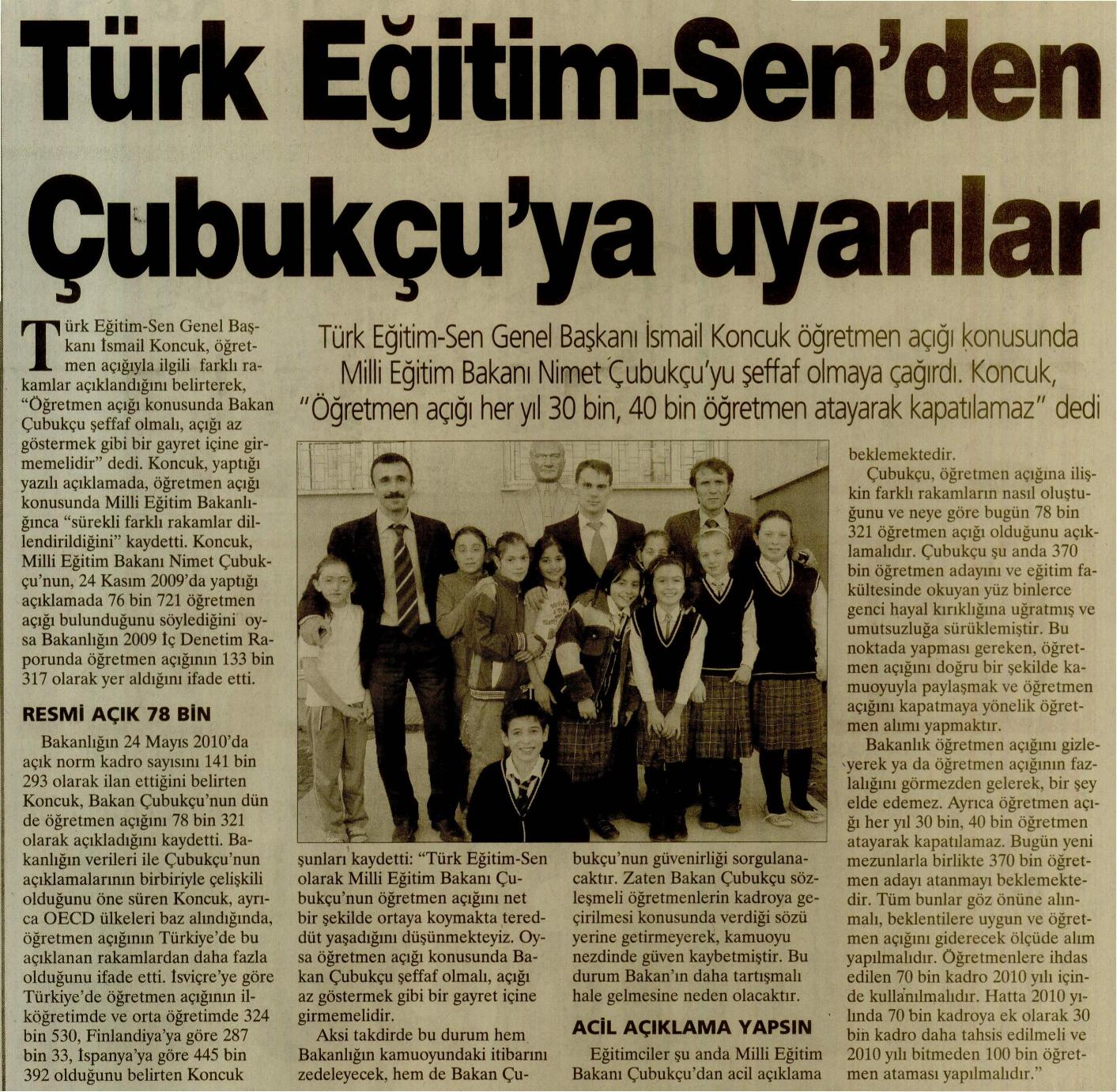 Türk Eğitim-Sen’den Çubukçu’ya Uyarılar – Dokuz Sütun