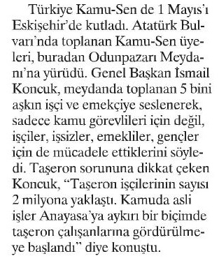 Türkiye Kamu-Sen 1 Mayıs`ı Eskişehir`de Kutladı. – Birgün