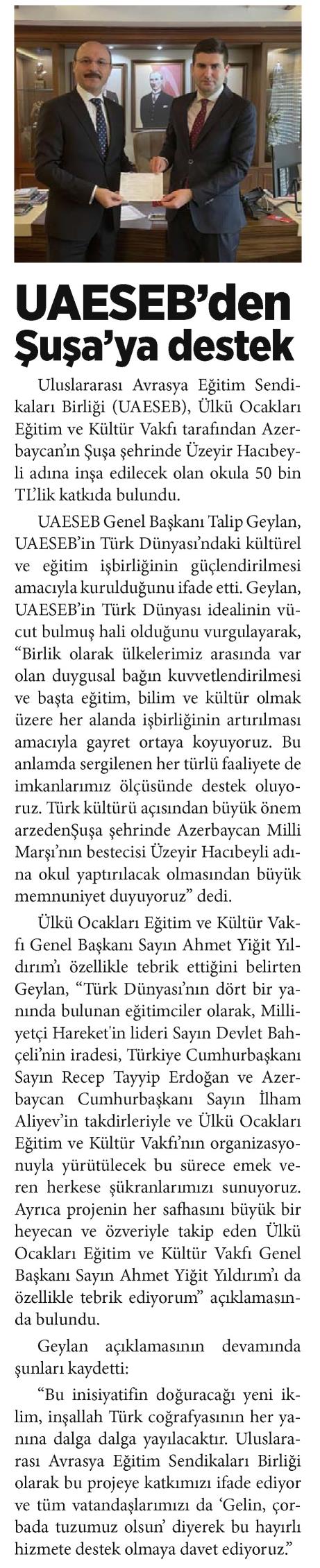 UAESEB`den Şuşa`ya Destek – Ankara Gazetesi Basında TES 5 Mart 2021 FacebookTwitterWhatsAppLinkedin A- A A+ Son Haberler Haberler YÖNETİCİ GÖREVLENDİRME YÖNETMELİĞİNE DAVA AÇTIK Türk Eğitim Sen, 30.01.2026 tarih ve 33153 sayılı resmi gazete yayımlanan Milli Eğitim Bakanlığı... 12 Şubat 2026 Haberler IRAK TÜRKMEN EĞİTİMCİLERİNDEN GENEL BAŞKAN TALİP GEYLAN’A ANLAMLI ZİYARET Irak Türkmen Eğitimciler Öğretmen Örgütü Başkanı Ali Gülboy ve beraberindeki heyet, 11 Şubat 2026... 11 Şubat 2026 Haberler ÖZEL EĞİTİM ANAOKULLARINDA GÖREV YAPAN ÖZEL EĞİTİM ÖĞRETMENLERİNE DE HAFTADA 1 SAAT EK DERS... 11 Şubat 2026 Haberler TÜRK EĞİTİM SEN ÜYELERİNE;MEB EKYS 2026 YAZILI SINAVINA HAZIRLIK DUYURUSU 2026 yılı Millî Eğitim Bakanlığı Eğitim Kurumlarına Yönetici Seçme Sınavı (MEB EKYS) kapsamında uygulanacak... 10 Şubat 2026