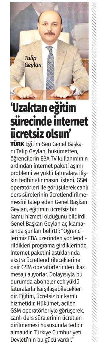 Uzaktan Eğitim Sürecinde İnternet Ücretsiz Olsun – Türkgün
