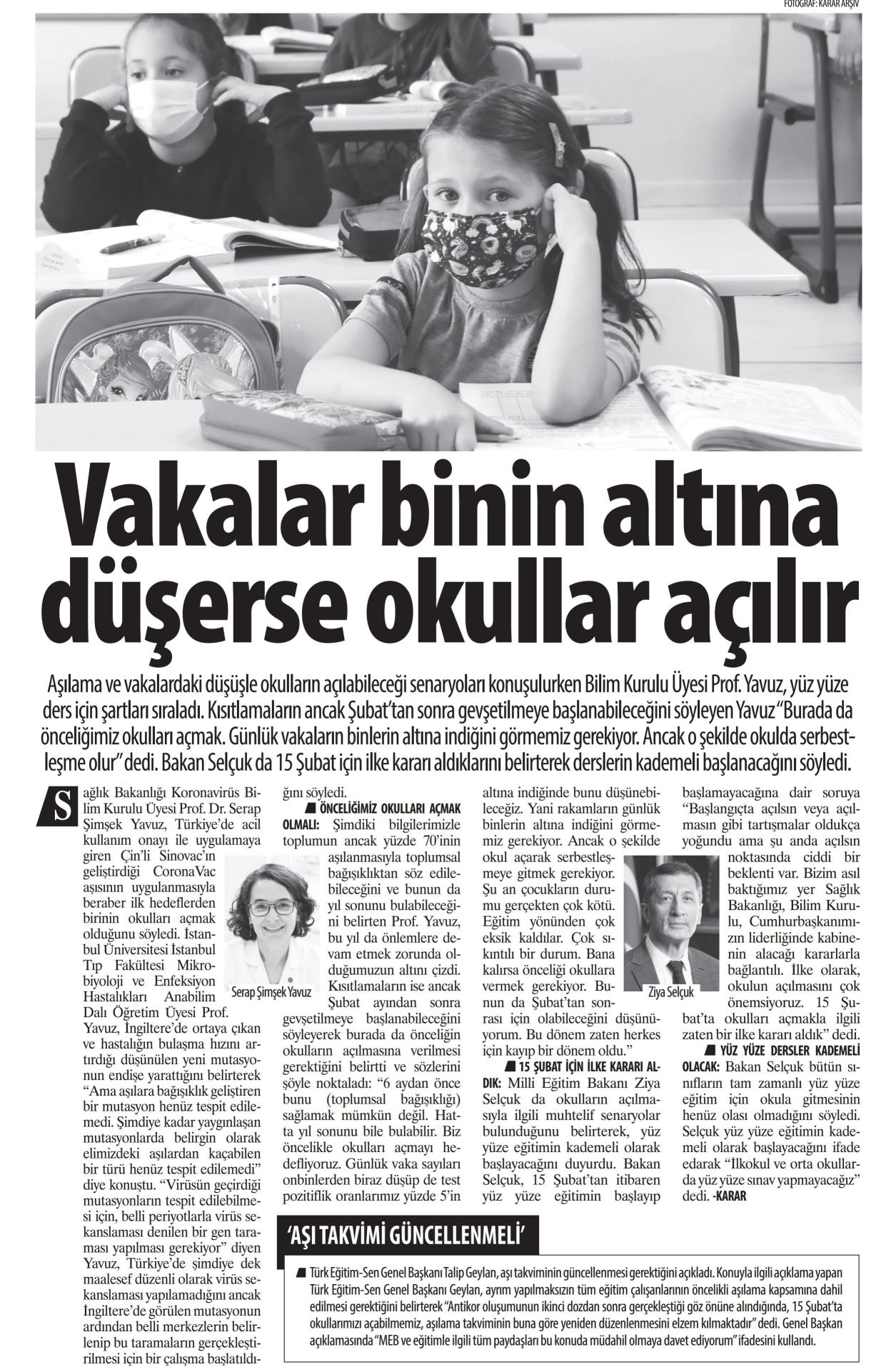 Vakalar Binin Altına Düşerse Okullar Açılır – Karar Basında TES 19 Ocak 2021 FacebookTwitterWhatsAppLinkedin A- A A+ Son Haberler Haberler YÖNETİCİ GÖREVLENDİRME YÖNETMELİĞİNE DAVA AÇTIK Türk Eğitim Sen, 30.01.2026 tarih ve 33153 sayılı resmi gazete yayımlanan Milli Eğitim Bakanlığı... 12 Şubat 2026 Haberler IRAK TÜRKMEN EĞİTİMCİLERİNDEN GENEL BAŞKAN TALİP GEYLAN’A ANLAMLI ZİYARET Irak Türkmen Eğitimciler Öğretmen Örgütü Başkanı Ali Gülboy ve beraberindeki heyet, 11 Şubat 2026... 11 Şubat 2026 Haberler ÖZEL EĞİTİM ANAOKULLARINDA GÖREV YAPAN ÖZEL EĞİTİM ÖĞRETMENLERİNE DE HAFTADA 1 SAAT EK DERS... 11 Şubat 2026 Haberler TÜRK EĞİTİM SEN ÜYELERİNE;MEB EKYS 2026 YAZILI SINAVINA HAZIRLIK DUYURUSU 2026 yılı Millî Eğitim Bakanlığı Eğitim Kurumlarına Yönetici Seçme Sınavı (MEB EKYS) kapsamında uygulanacak... 10 Şubat 2026
