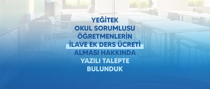 Milli Eğitim Bakanlığı’nın YEĞİTEK Okul Sorumlusu Görevlendirme Esasları başlıklı açıklamasında, örneğin okulunda 21saat ders yükü olan bir öğretmenin okul sorumlusu olarak görevlendirilmesi halinde ek ders ücret ödemesinin hangi hesaba göre yapılacağı veya hiç ders yükü olmayan bir öğretmenin okul sorumlusu olarak görevlendirilmesi halinde ek ders ücret ödemesinin “Millî Eğitim Bakanlığı Yönetici ve Öğretmenlerinin Ders ve Ek Ders Saatlerine İlişkin Kararın 16’ncı maddesinin ikinci fıkrası kapsamında ek ders ücretinin haftalık 18 saat olarak mı hesaplanacağı” gibi hususların daha net, somut ve örnek açıklayıcı ifadelerle güncellenmesi ve YEĞİTEK Okul Sorumlusu olarak görevlendirilen öğretmenlerin mevzuat doğrultusunda sosyal etkinlikler kapsamında kulüp faaliyetleri, nöbet, belleticilik vb. görevler alabilmeleri için görüşlerinin yenilenmesi hususunda; Türk Eğitim Sen olarak Milli Eğitim Bakanlığı Yenilik ve Eğitim Teknolojileri Genel Müdürlüğü’ne yazılı talepte bulunduk.