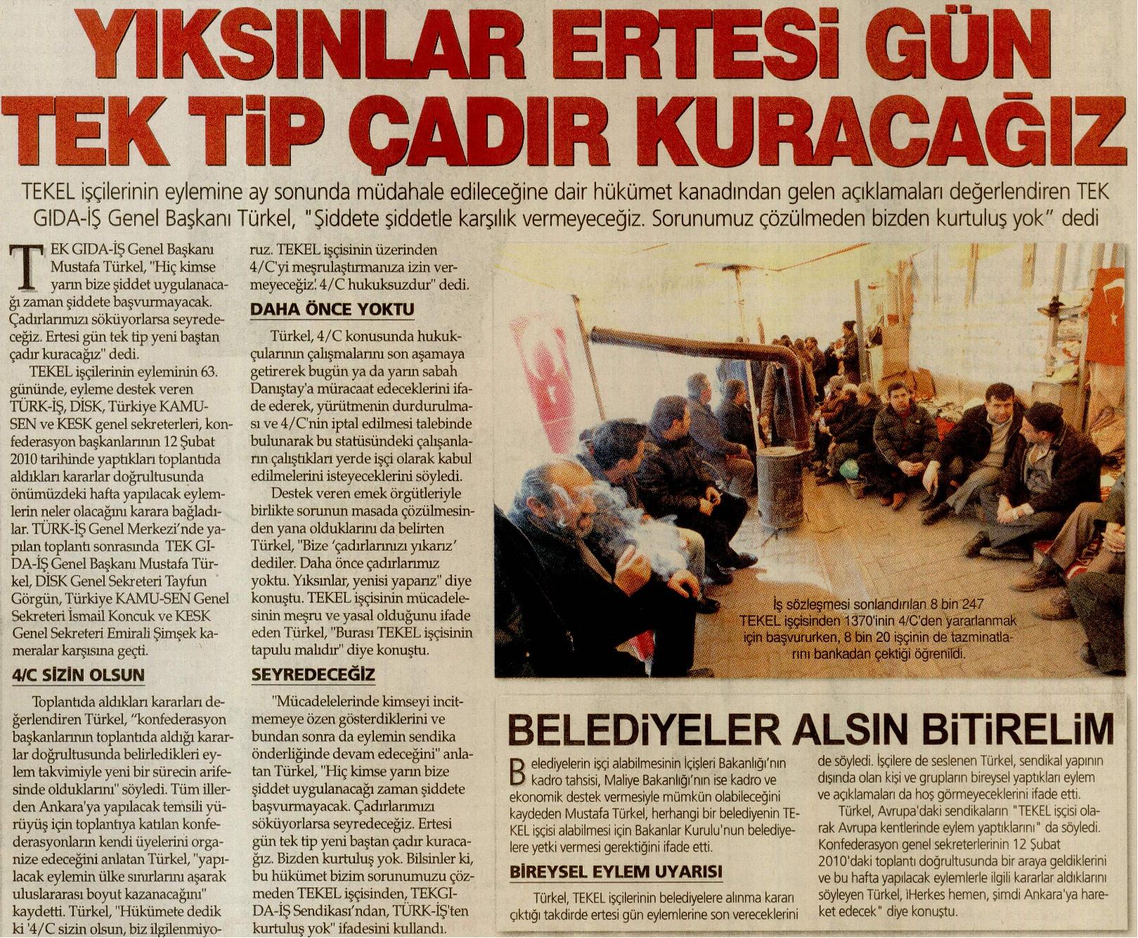 Yıksınlar Ertesi Gün Tek Tip Çadır Kuracağız – Bugün