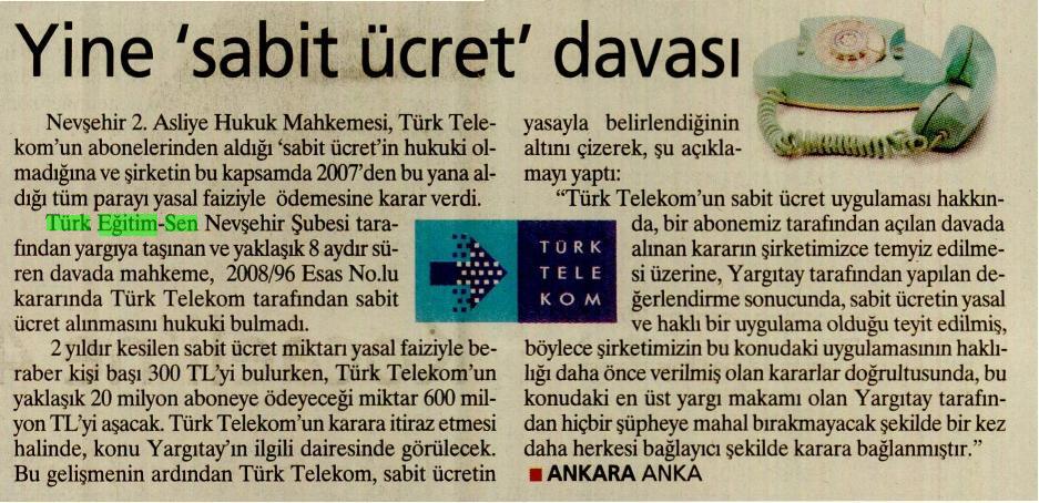 Yine Sabit Ücret Davası – Milliyet